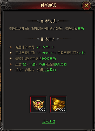 晚上的日常活動--科舉殿試獲得,活動時間:20:35~20:50