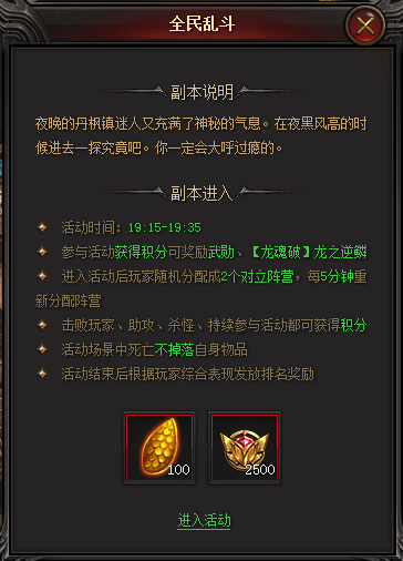 晚上的日常活動--全民亂斗獲得,活動時間:19:15~19:35