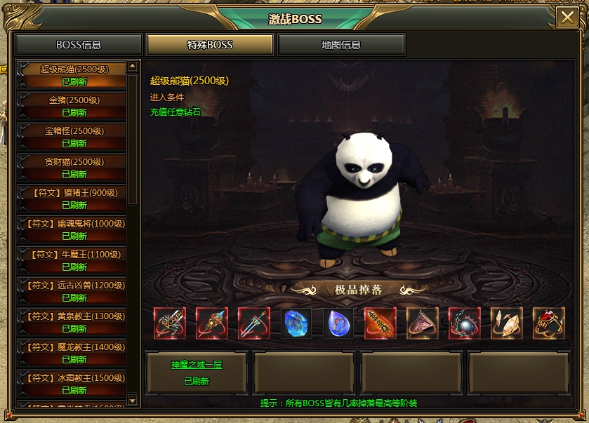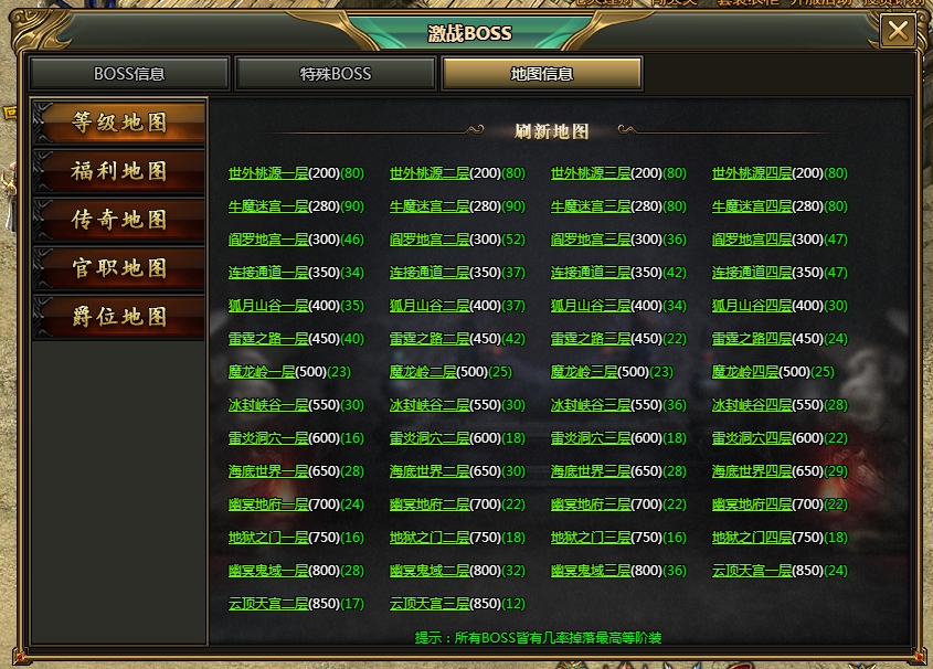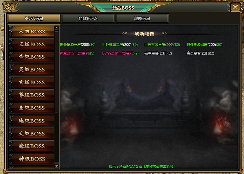 1. 可以清楚的看到各級(jí)boss的刷新情況